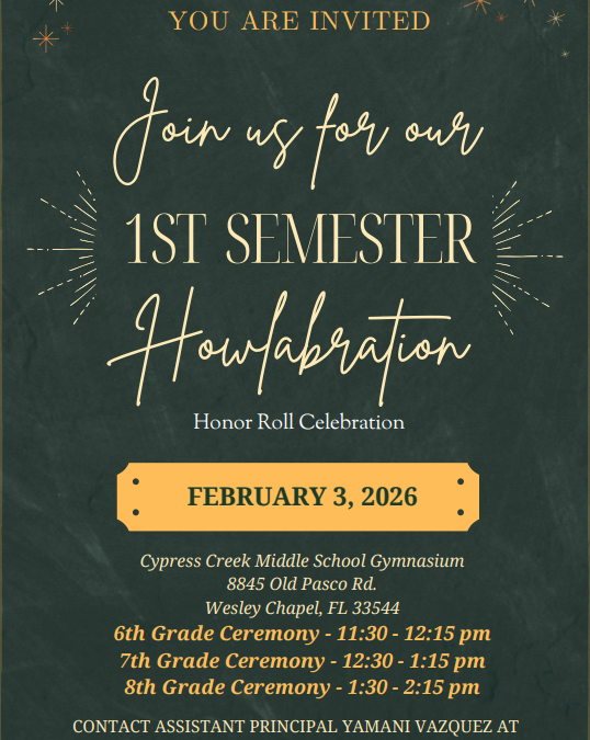 Howlabration Invite 6th grade 11:30-12:15 7th grade 12:30-1:15 8th grade 1:30-2:15 Click here for more information